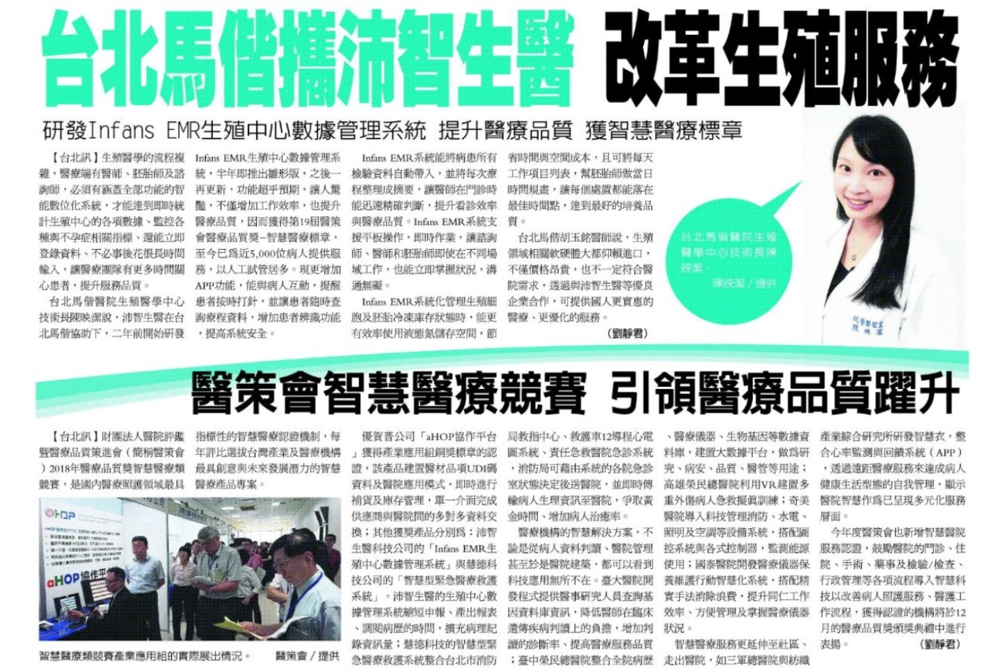 最新消息 2019.08.22 台北馬偕攜沛智生醫改革生殖服務之報導 最新消息 2019.04.11 【參展資訊】2019 ASPIRE 5/3~5/5 @ 香港 最新消息 2018.12.04 沛智生醫榮獲第15屆國家新創獎-初創企業獎 最新消息 2018.11.26 【參展資訊】2018醫療科技展Taiwan Healthcare+ 11/29~12/2 @ 南港展覽館 最新消息 2018.08.15 Infans EMR生殖中心數據管理系統榮獲醫策會第19屆醫療品質獎 最新消息 2018.07.31 沛智生醫和台灣大學生醫電資所簽定產學合作協議,提供研究生實習機會。 最新消息 2018.07.21 沛智生醫積極拓展新南向市場 1 2